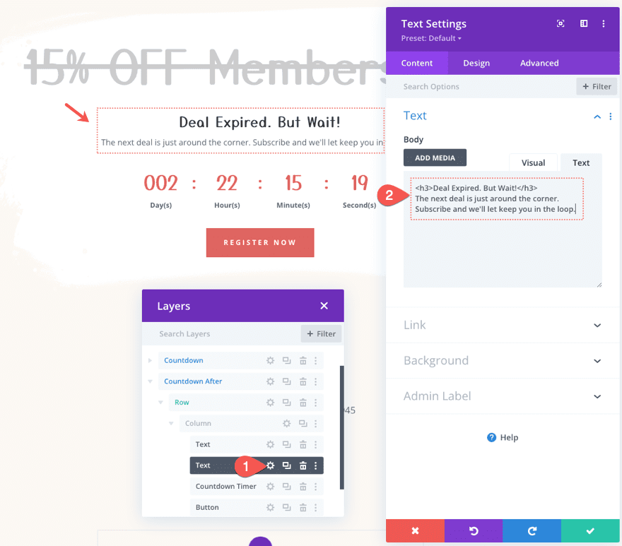 Cómo mostrar contenido condicional de tiempo cuando expira un temporizador de cuenta regresiva en Divi