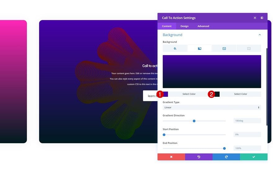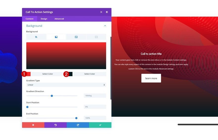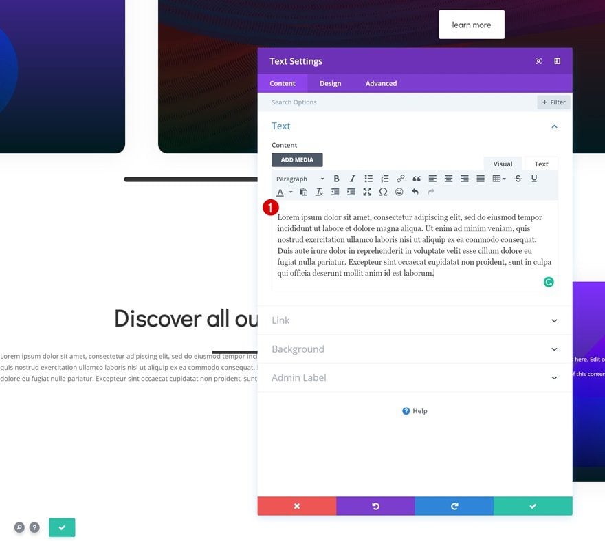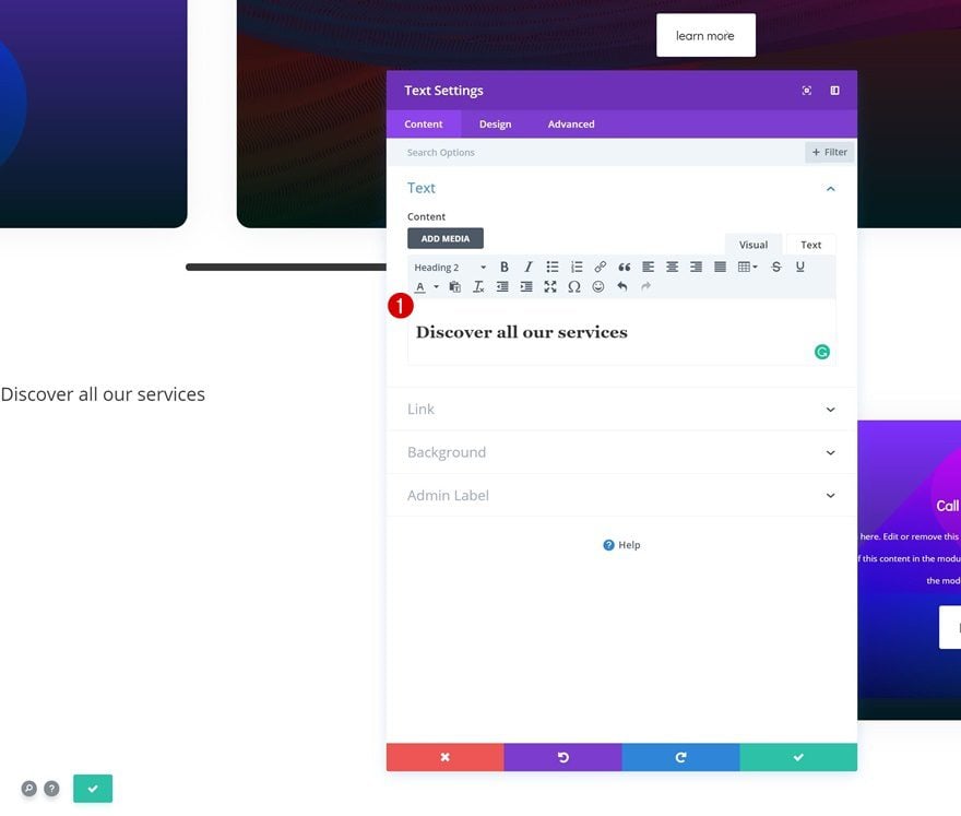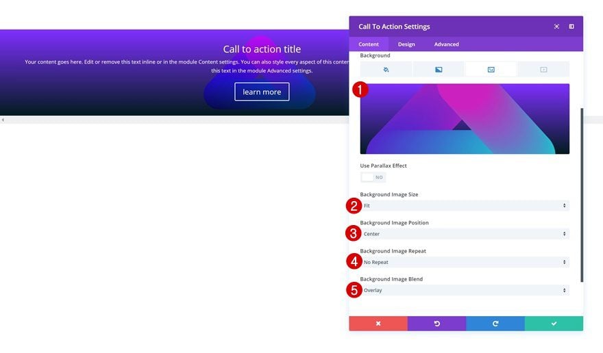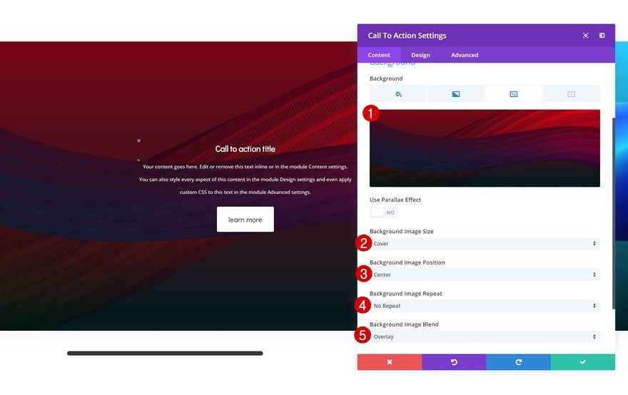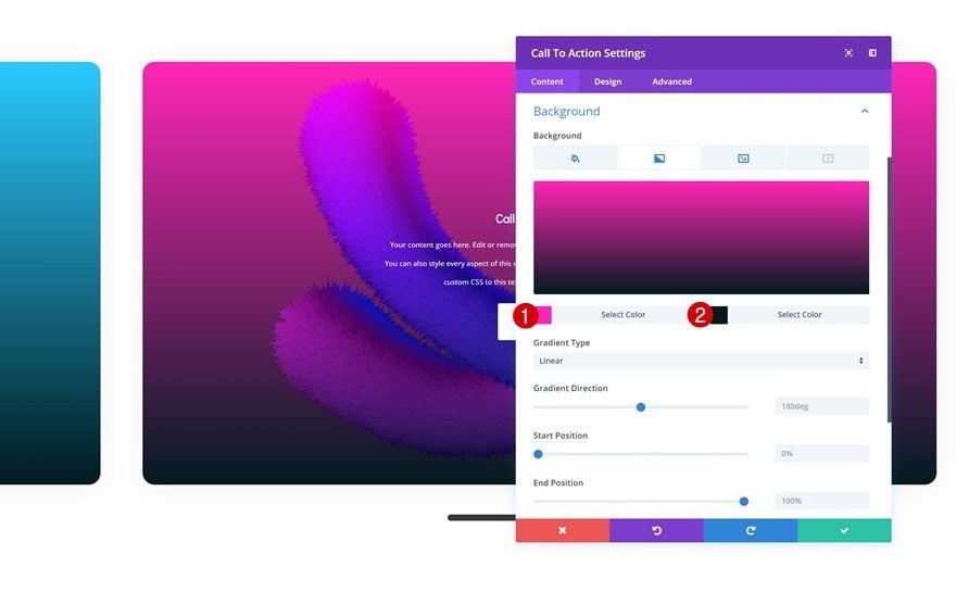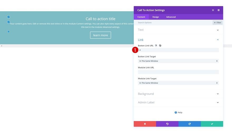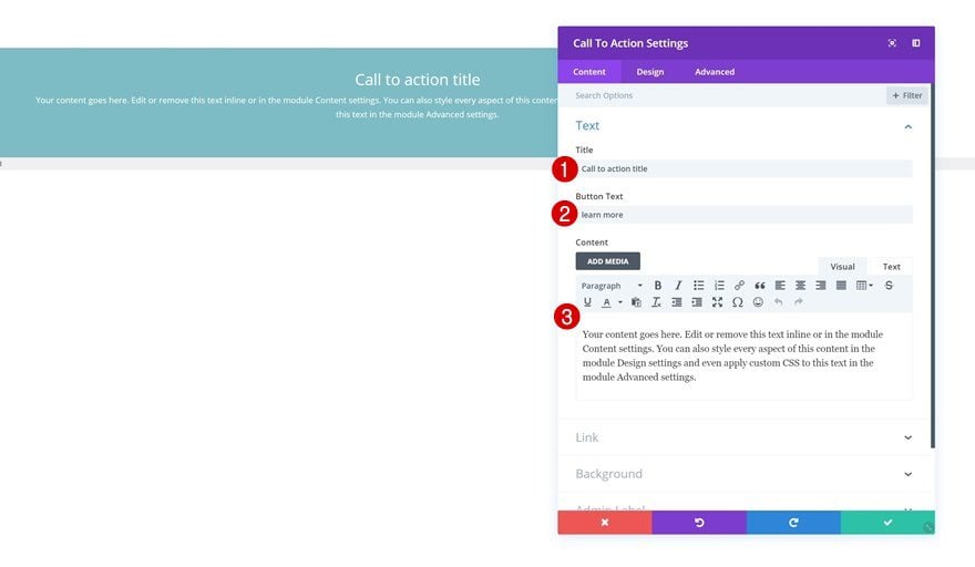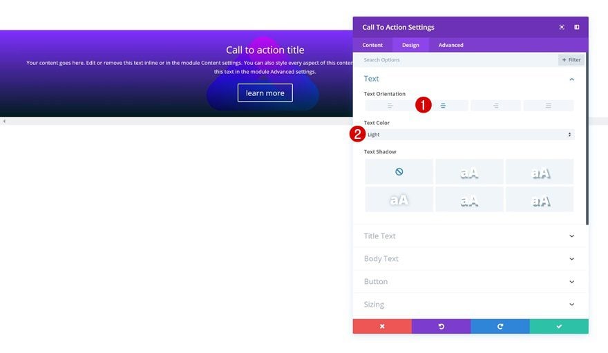Una vez que haya terminado de modificar la configuración de la fila, continúe y agregue un módulo CTA a la columna. Agregue algún contenido de su elección.