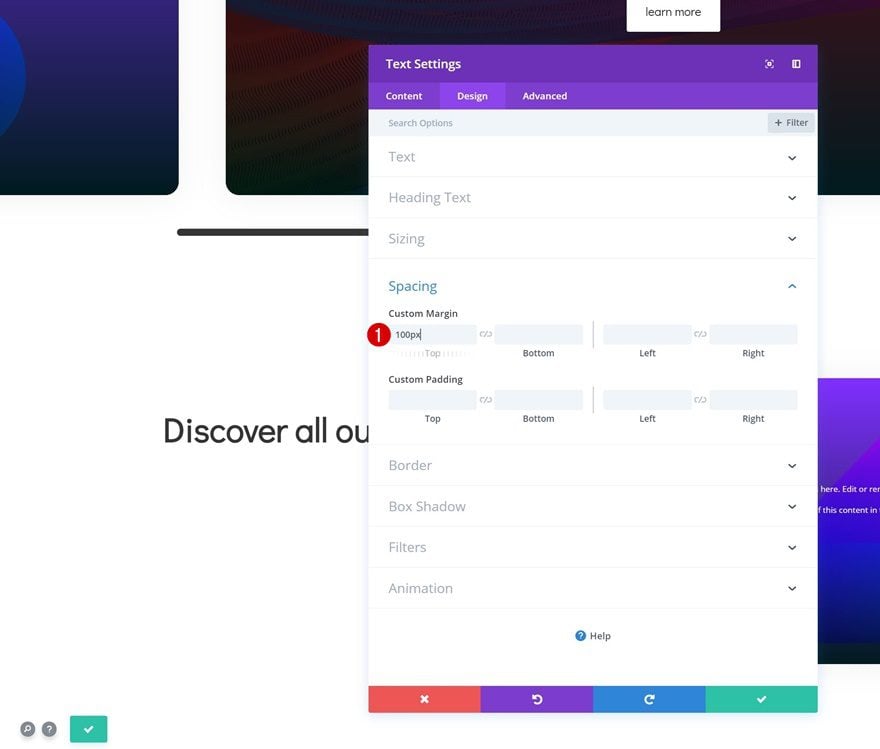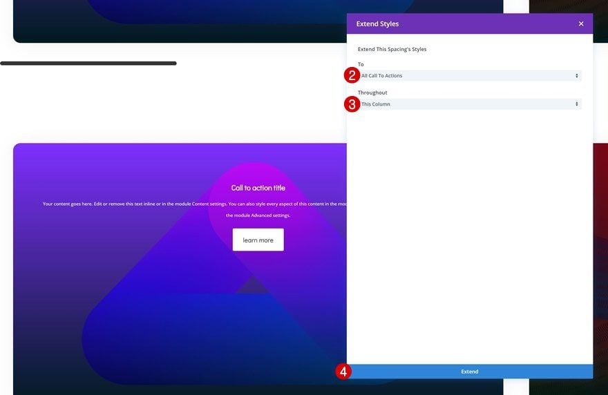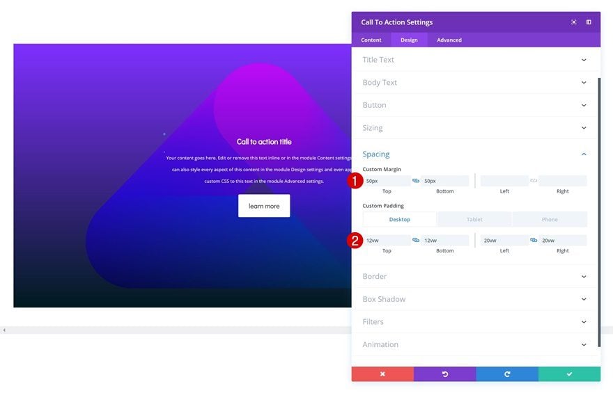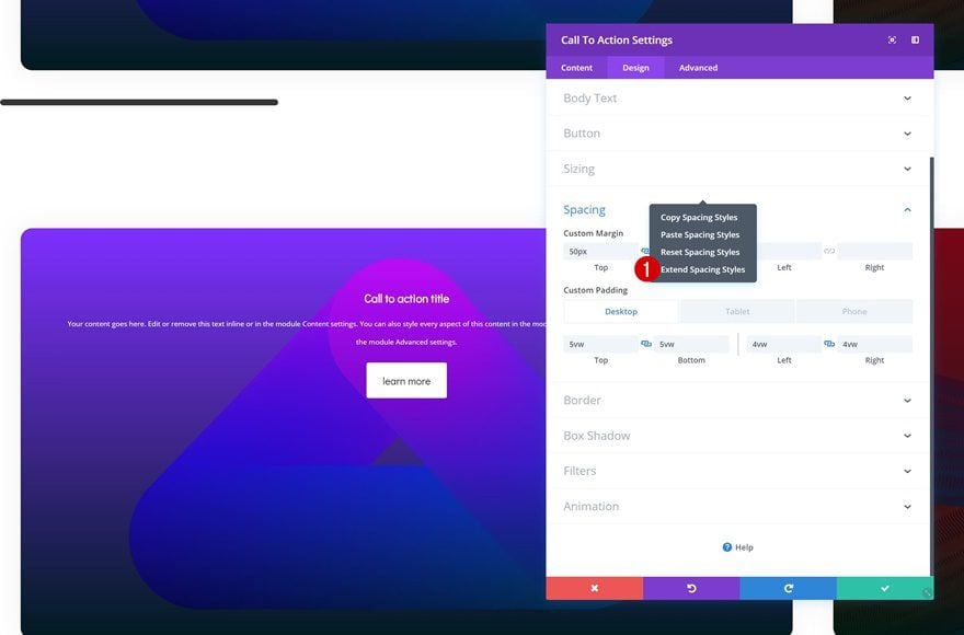 Luego, cambie la configuración de espaciado del primer módulo CTA.
