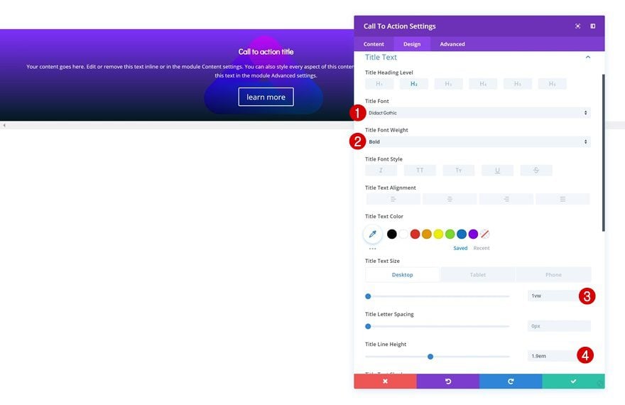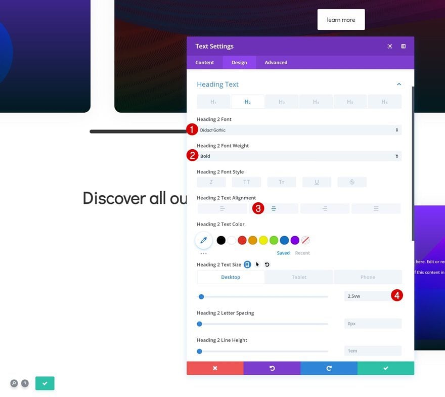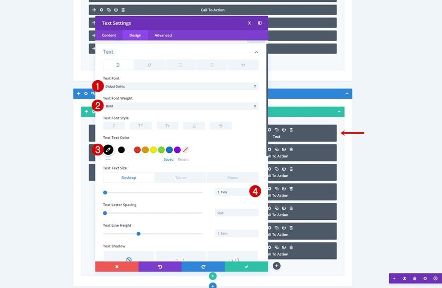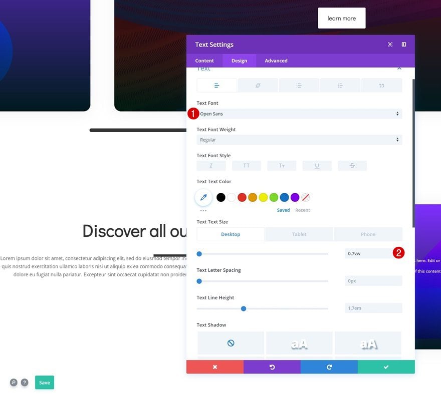 Continúe cambiando la configuración de texto en la pestaña de diseño.