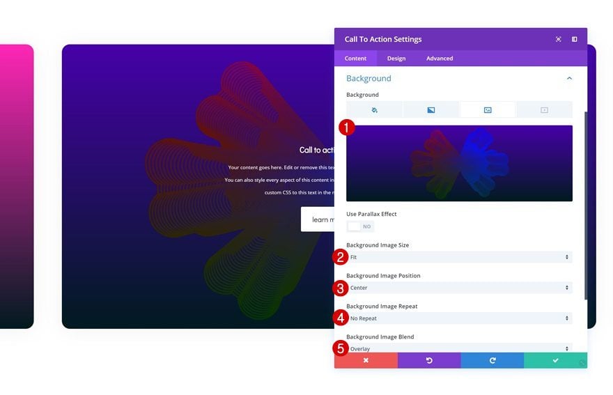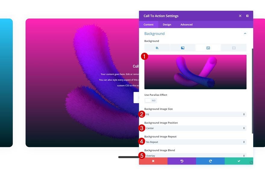 En la sección de enfoque de esta publicación, mencionamos que usaremos las imágenes de fondo fluidas que puede descargar de forma gratuita yendo a esta publicación . Una vez que haya descargado las imágenes de fondo fluidas, busque el archivo de imagen ‘ fluid-style-2.png ‘ y cárguelo en la pestaña de imagen de fondo. Modifique la configuración de la imagen de fondo en consecuencia: