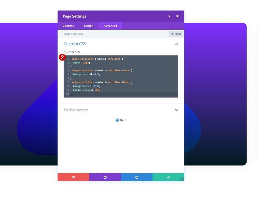 Luego, abra la configuración de la página, vaya a la pestaña avanzada y agregue el siguiente código CSS personalizado: