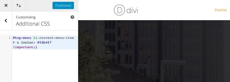Después de crear su tema Divi Child, querrá asegurarse de que todo esté en un solo lugar. Entonces, si ya tiene CSS personalizado o código agregado a Divi, lo migrará a su tema secundario. Por ejemplo, si tiene un CSS personalizado en Divi > Personalizador de temas > CSS adicional , todo lo que tendrá que hacer es mover (cortar y pegar) el CSS al archivo style.css de su tema secundario.