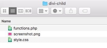 Aquí están los tres archivos que debe tener su carpeta de tema hijo: