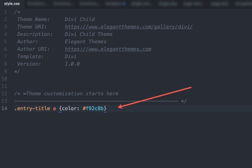 Para hacer esto, necesitamos poner en cola la hoja de estilo del tema principal (Divi). Poner en cola es una palabra elegante que literalmente significa «agregar a una cola», por lo que en este caso estamos agregando la hoja de estilo principal para ponerla en cola antes que la hoja de estilo del tema secundario. En otras palabras, cualquier cosa que agreguemos a nuestra hoja de estilo de tema secundario se agregará y reemplazará al tema principal.