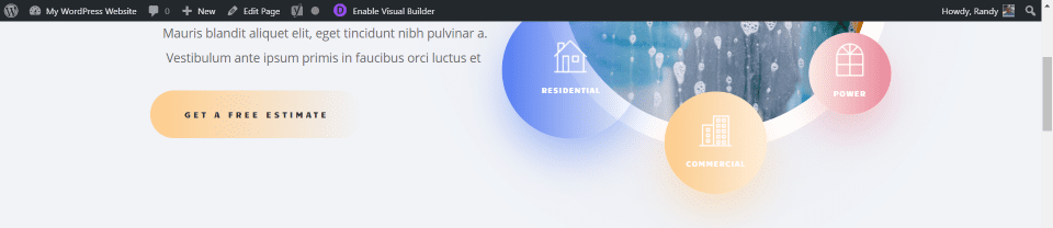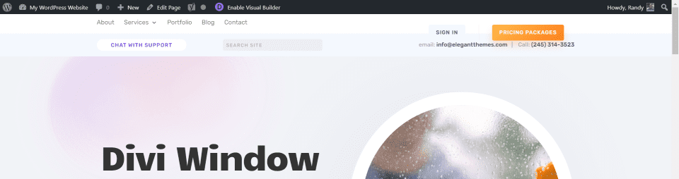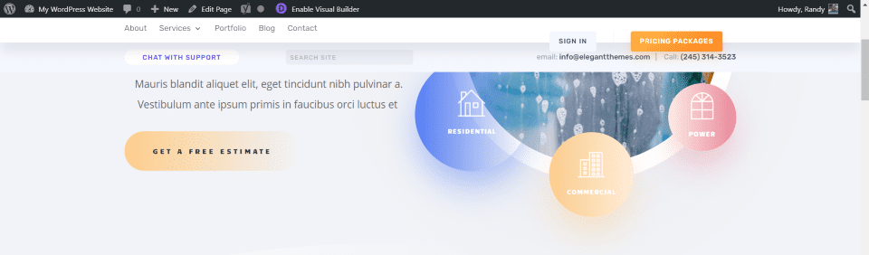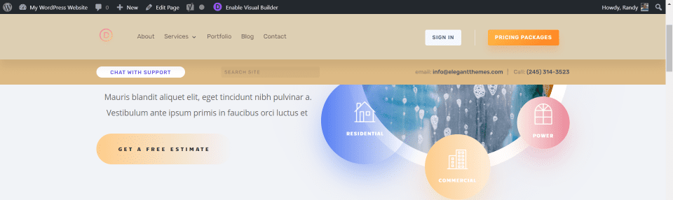 De forma predeterminada, un encabezado creado con Theme Builder se desplaza con el sitio. En el ejemplo anterior, me desplacé hacia abajo en la página y el encabezado se desplazó.