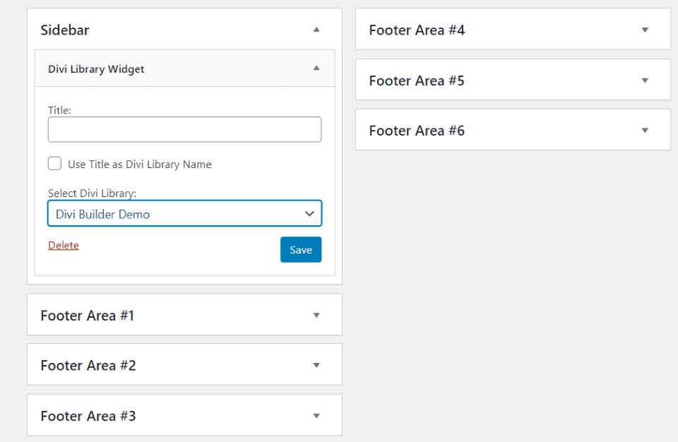 El Widget de biblioteca le permite colocar cualquier diseño de la Biblioteca Divi en sus barras laterales, pie de página o en cualquier otro lugar donde use widgets.