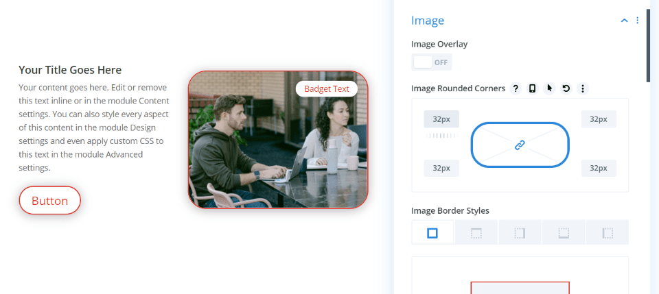 Esta es la alineación correcta. También realicé algunos ajustes a la imagen, como agregar esquinas redondeadas, un borde rojo y una sombra de cuadro. También puede agregar una superposición a la imagen.