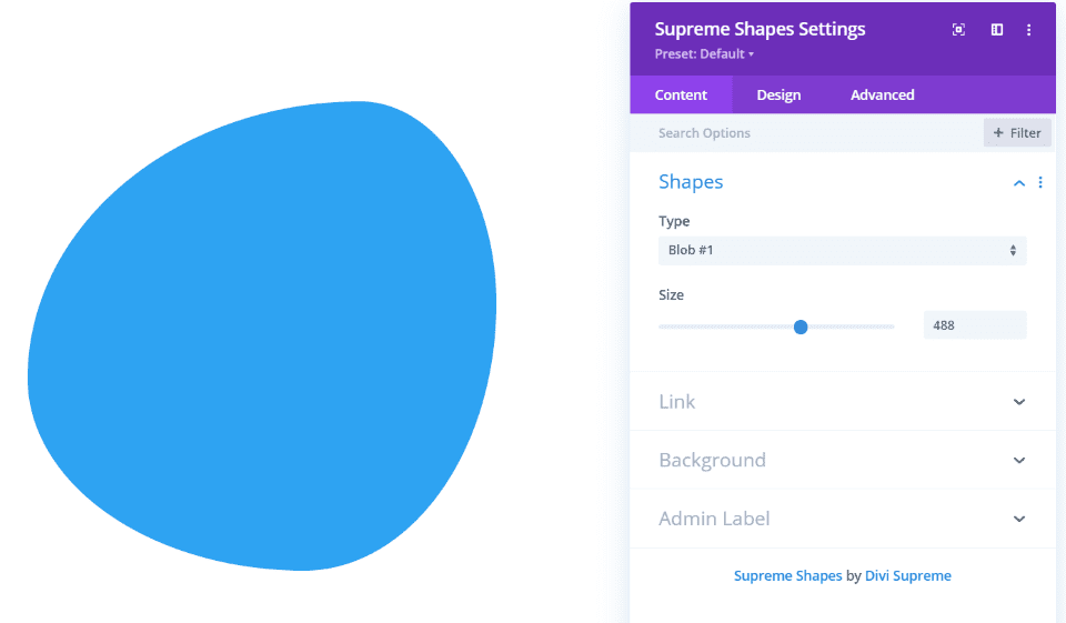 Supreme Shapes le permite elegir una forma de la lista desplegable y establecer su tamaño. Tiene 17 formas diferentes para elegir.