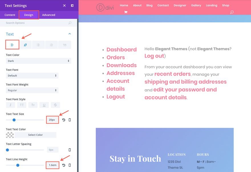 Diseño de la página Mi cuenta con Divi Builder