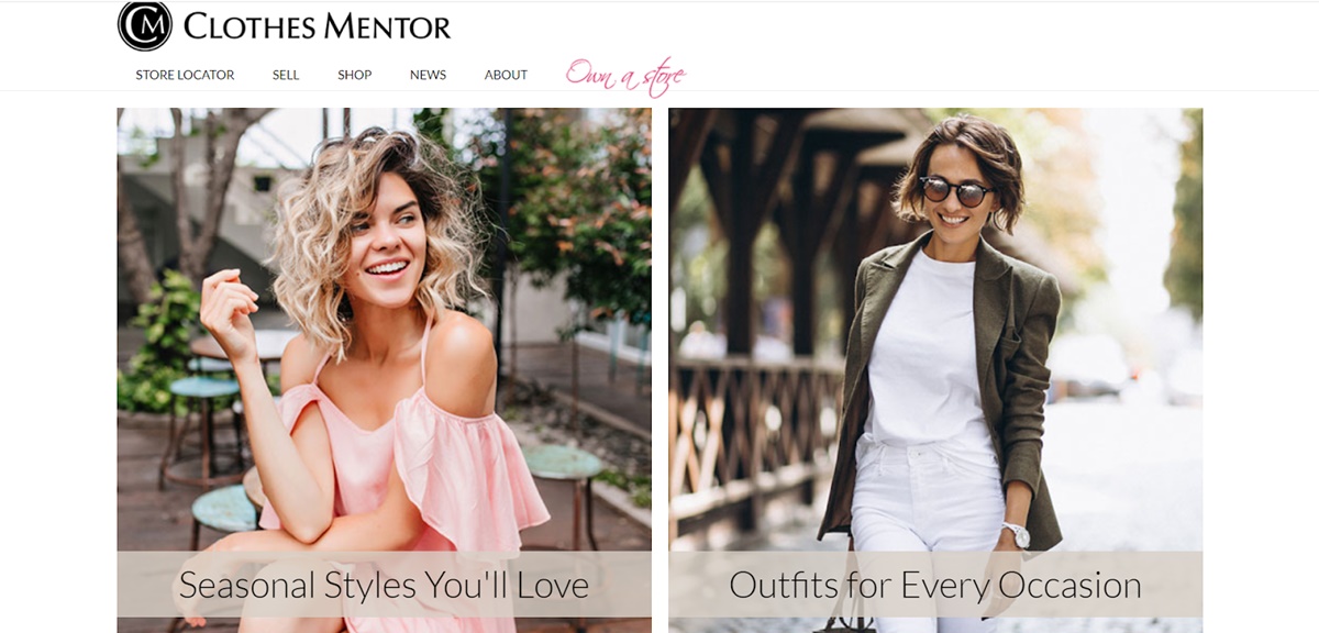 Clothes Mentor es una tienda de reventa ideal de ropa de diseñador de segunda mano sin etiquetas de precio de diseñador. Todas las prendas y ropa de Clothes Mentor son como nuevas, se muestran en excelente forma, a la moda o incluso atemporales. También se aceptan complementos, zapatos, joyas o carteras. Para ropa de mujer, la talla va de la 0 a la 26, y Petites!