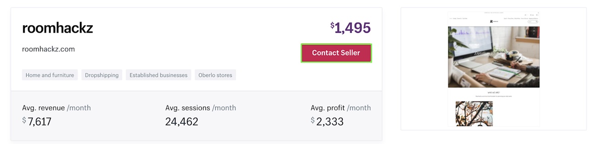 Cada listado le proporcionará una descripción de lo que obtendrá de la tienda de dropshipping. La información incluye el tráfico y los ingresos durante el año pasado, y allí puede ver el precio deseado por el vendedor sobre el cual ciertamente puede negociar con el vendedor. Algunos vendedores incluso hacen un esfuerzo adicional y explican por qué ponen a la venta su tienda de dropshipping; muchas veces, la razón es la falta de tiempo, o se enfrentan a un evento que cambia la vida.
