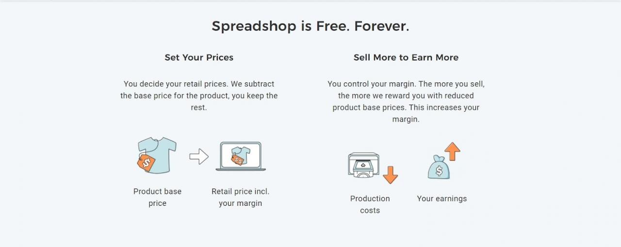 En cuanto a los precios, los precios de Spreadshop son generalmente amigables para el cliente y sin riesgos. No se requiere cuota de membresía, pero tendrá que dar parte de sus ventas a Spreadshop.