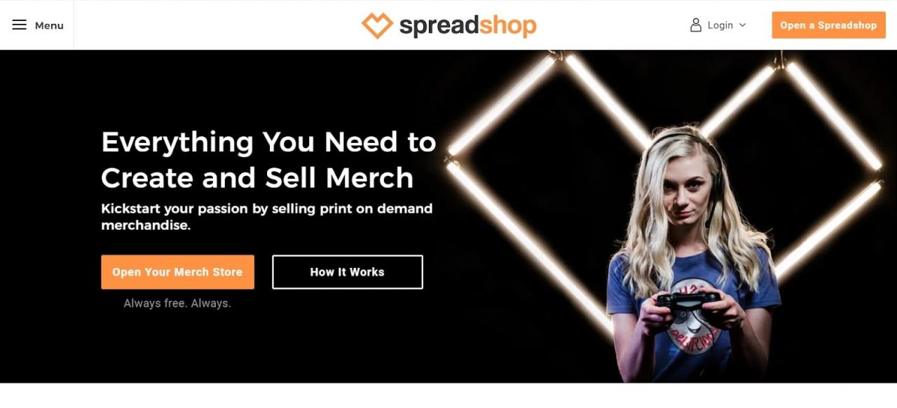 Lo único de Spreadshop radica en su mercado. El mercado de Spreadshop le permite vender sus diseños sin pensar en construir una tienda o promociones. Solo necesita cargar su diseño en su tienda Spreadshop y ponerlo en sus productos preferidos. Los compradores elegirán sus productos favoritos y Spreadshop se encargará de otras molestias: desde el procesamiento del pedido, el pago, la impresión y el envío hasta el cumplimiento. No hay ningún costo directo para usted y recibirá comisiones pagadas una vez que se venda su artículo.