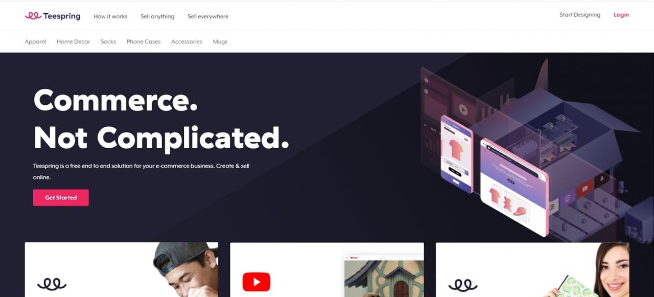 Teespring es una solución óptima para crear e instalar productos personalizados. El servicio ofrece una variedad de productos personalizados y los recursos necesarios para su negocio de comercio electrónico.