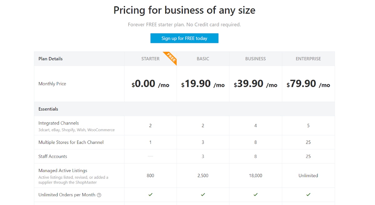 Los precios de Dropship Beast se muestran de forma transparente en la página de destino. Hay una prueba gratuita de dos semanas para hasta 200 listados y 100 seguimientos. Cuanto más dinero pague, más listados y seguimientos podrá obtener. Especialmente, Dropship Beast también ofrece un plan personalizado de sus características preferidas y números de seguimientos y listados.