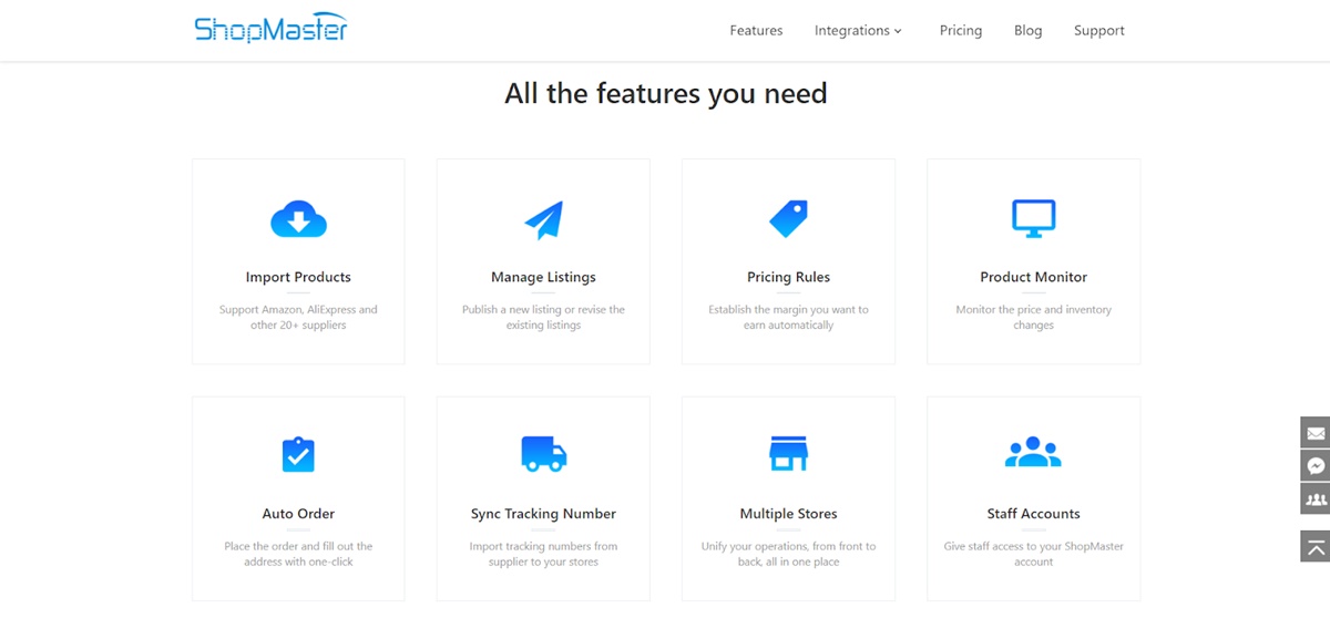 Con Shop Master, los dropshippers pueden reducir su arduo trabajo con funciones de automatización inteligentes y flexibles para maximizar la eficiencia y las ganancias. El software ofrece una amplia gama de opciones de abastecimiento de productos que permiten a sus usuarios importar fácilmente productos de grandes proveedores como AliExpress, Amazon, etc. Los productos obtenidos de estos proveedores pueden tener un precio automático para que coincida con los cambios en las tendencias de precios en tiempo real.