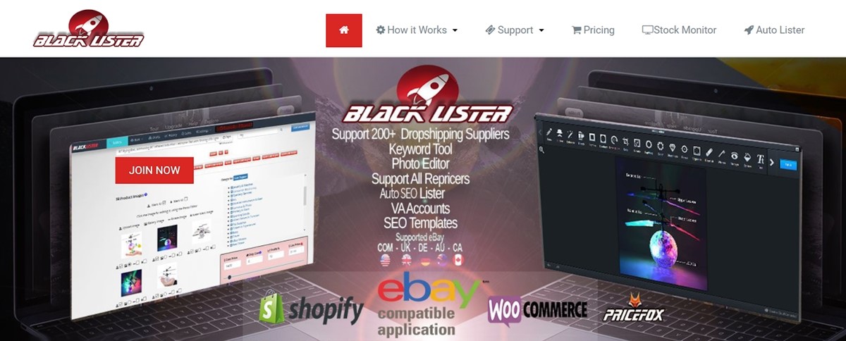 Otro programa de dropshipping de eBay mejor valorado en el que confían varias empresas es Black Lister. Black Lister ayuda a enumerar productos en eBay con la herramienta de palabras clave, un editor de fotos, una plantilla de autocompletado de SEO y también admite listados de SKU.