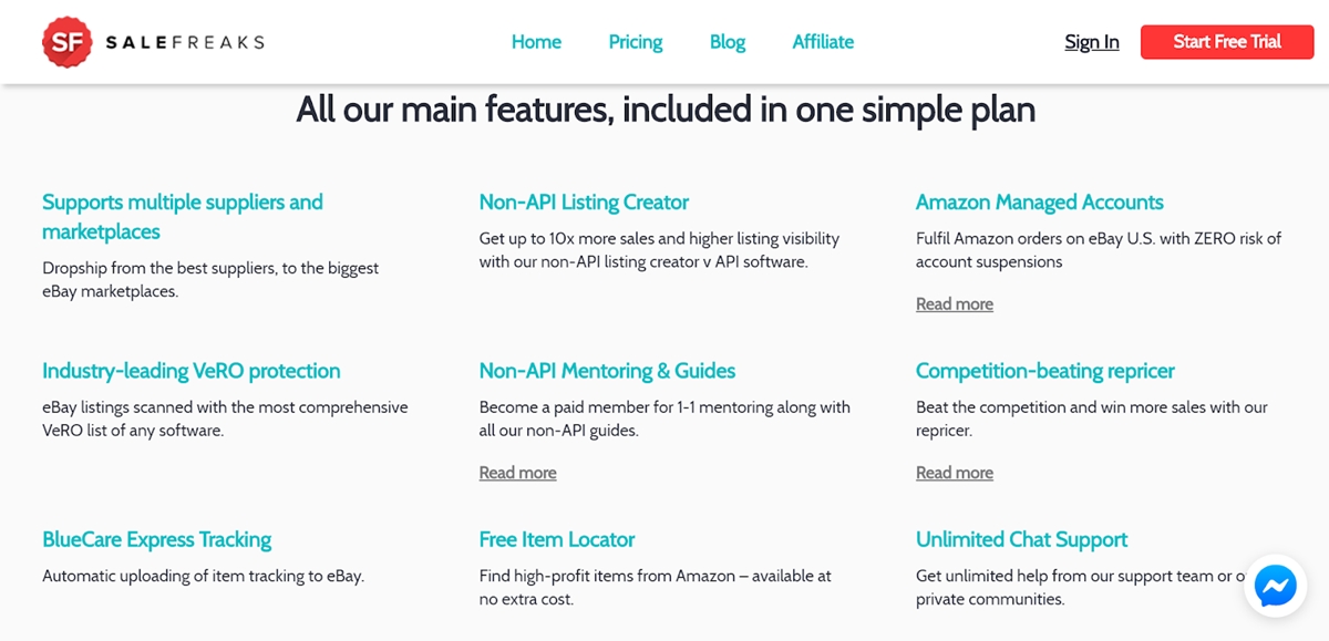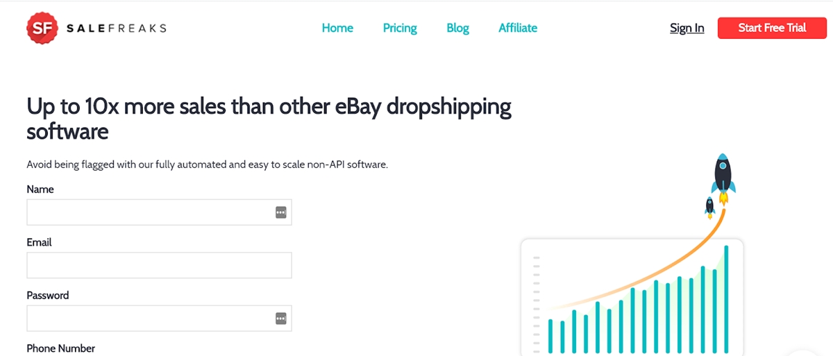 Salefreaks es una solución de automatización de dropshipping todo en uno para su tienda eBay. Salefreaks se asoció con casi todos los principales proveedores, incluidos Amazon, Walmart, Costco, AliExpress y Home Depot, siendo Amazone el más destacado. La plataforma se ha conectado con más de 1000 tiendas, con más de 100 millones de dólares en ventas de eBay y ocho millones de listados, lo que indica su posición en el mercado.