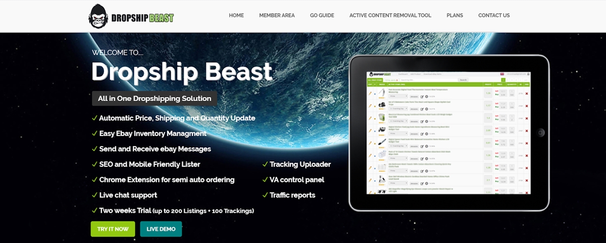 Dropship Beast se enorgullece de presentar las soluciones y servicios de dropshipping todo en uno para administrar su tienda eBay sin problemas. El software automatiza toda su gestión de precios, envíos y cantidades, con la integración de la extensión de Chrome para ayudar a semiautomatizar la lista de productos y los pedidos también.