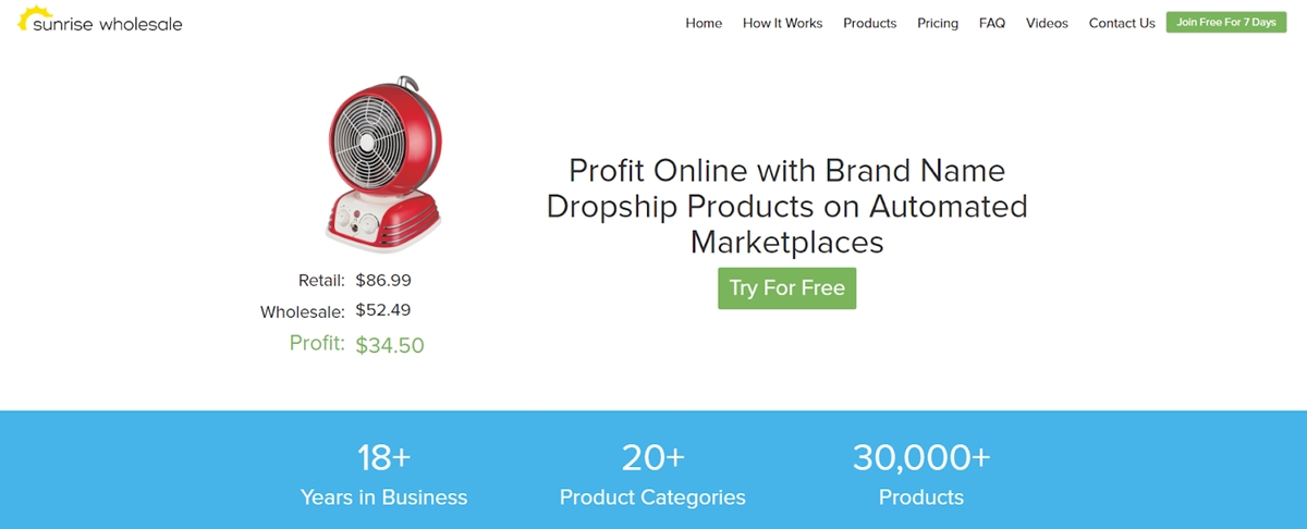 Sunrise Wholesale es uno de los sitios de envío directo al por mayor más populares con sede en EE. UU. Con su larga historia de más de 2 décadas en la industria, muchos proveedores locales y dropshippers confían ampliamente en Sunrise Whole.