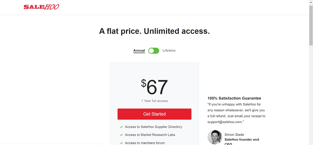 Especialmente, no se requiere una cantidad mínima de pedido o una tarifa de solicitud cuando se usa SaleHoo. La tarifa anual es de $ 67, que en realidad es asequible en comparación con las características sobresalientes a las que pueden acceder las empresas.