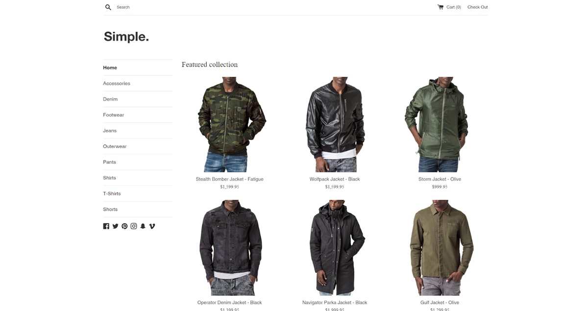 Simple es un tema de Shopify fresco y gratuito que incluye dos diseños diferentes. Tiene una gran capacidad de zoom única que le permite a su cliente tener una vista clara y transparente de cualquier producto.