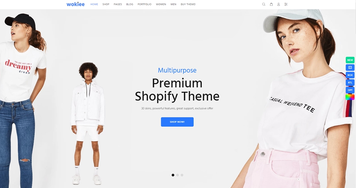 Wokiee es uno de los mejores temas de Shopify que puedes encontrar si lo que buscas es versatilidad. Su última actualización incluye 16 nuevas máscaras y muchos bloques para ayudarlo a crear el diseño de comercio electrónico que desea. Más de 4 mil tiendas en línea ahora usan este tema.