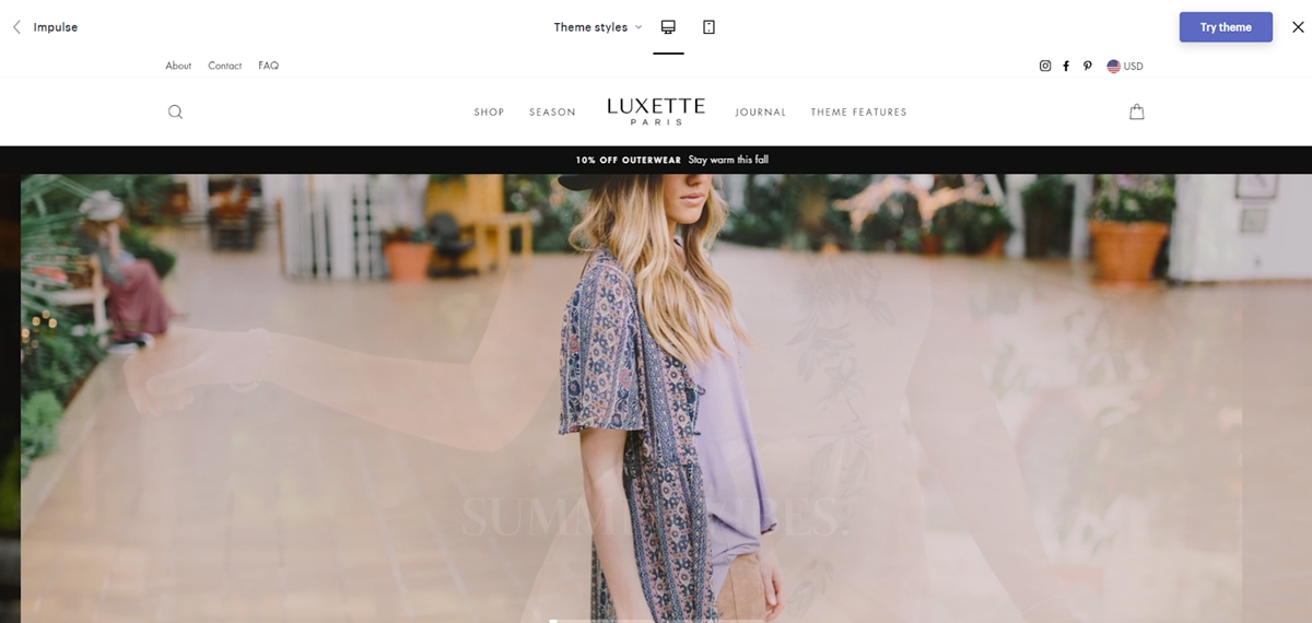 Un tema/plantilla determina la forma en que se ve y se siente su tienda en línea. Diferentes temas con diferentes estilos y diseños ofrecen una experiencia diferente para sus clientes.