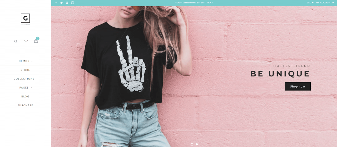 Brooklyn es uno de los primeros temas de Shopify gratuitos clásicos y con mejor estilo. Brooklyn es adecuado para tiendas de ropa modernas que buscan resaltar su marca y producto.