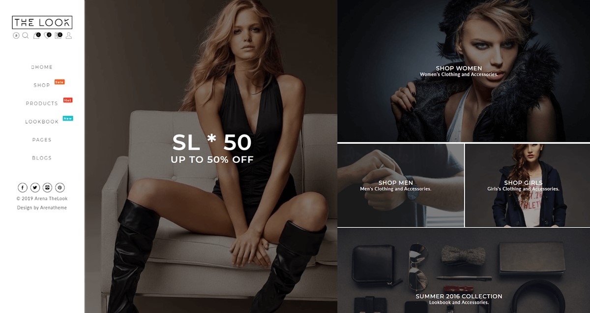 El tema también tiene más de 15 temas secundarios para diferentes fines comerciales, todos incluidos con una sola compra. Tiene numerosas opciones de encabezado y pie de página, así como páginas personalizadas esenciales de comercio electrónico para preguntas frecuentes, contacto, lookbook, tienda de Instagram, diseño de marcas, etc.