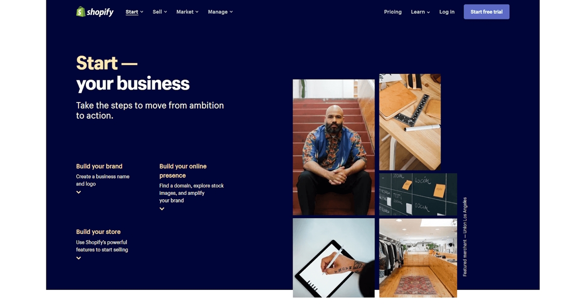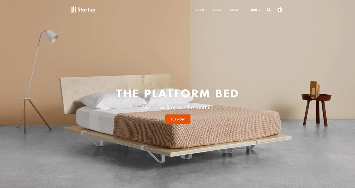 Llegaremos a qué diseño debe usar en la sección de temas, pero básicamente, debe optar por una estrategia de «imagen de héroe». Esto significa que se usan fotos grandes para demostrar claramente su producto.