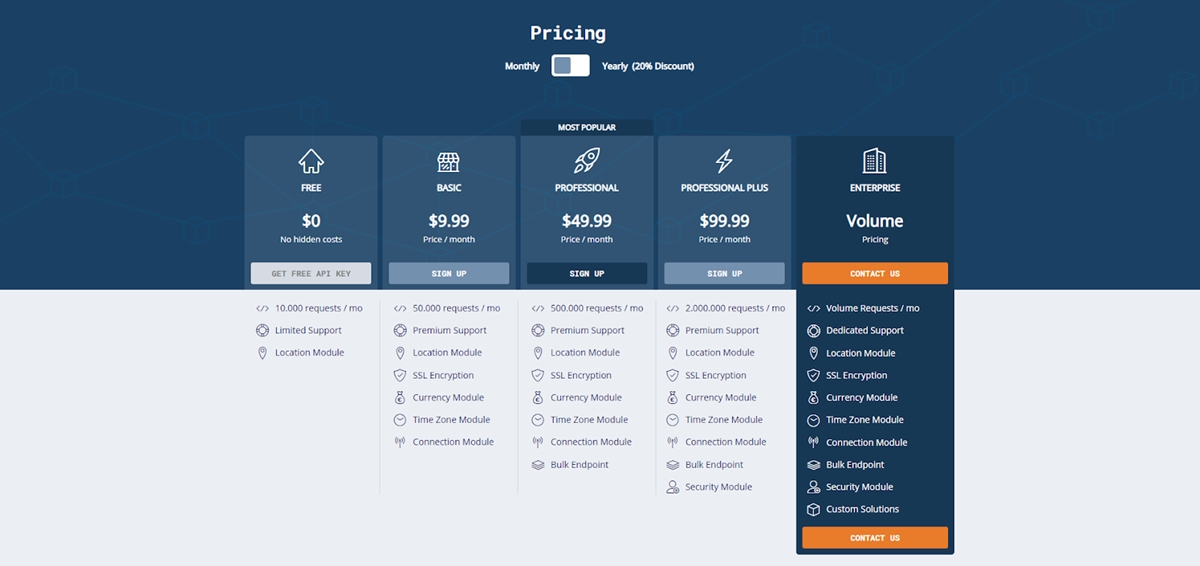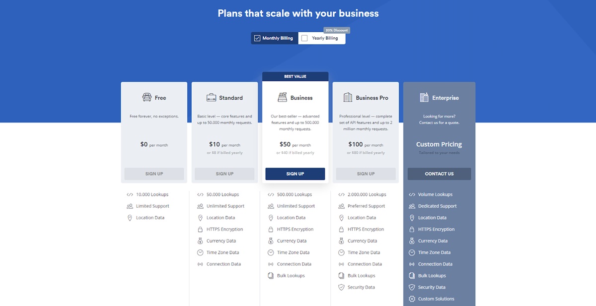 La infraestructura de Ipstack es capaz de atender millones de solicitudes diariamente, con tres opciones para elegir: