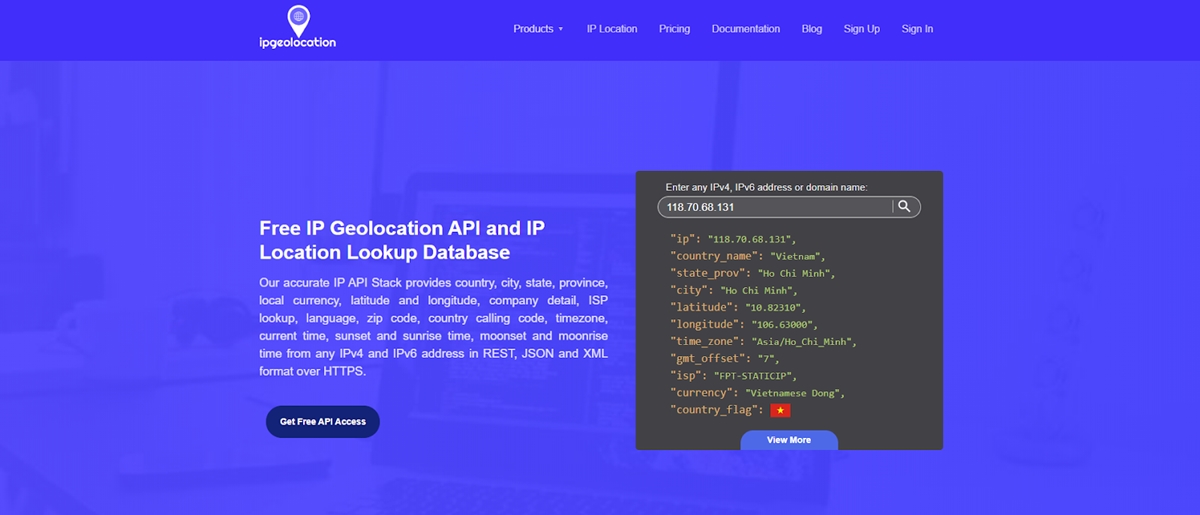 Como sugiere el nombre, Ipgeolocation se trata de proporcionar datos de geolocalización detallados. La herramienta puede ayudar a sus clientes a autocompletar campos como país, ciudad, código postal y más.