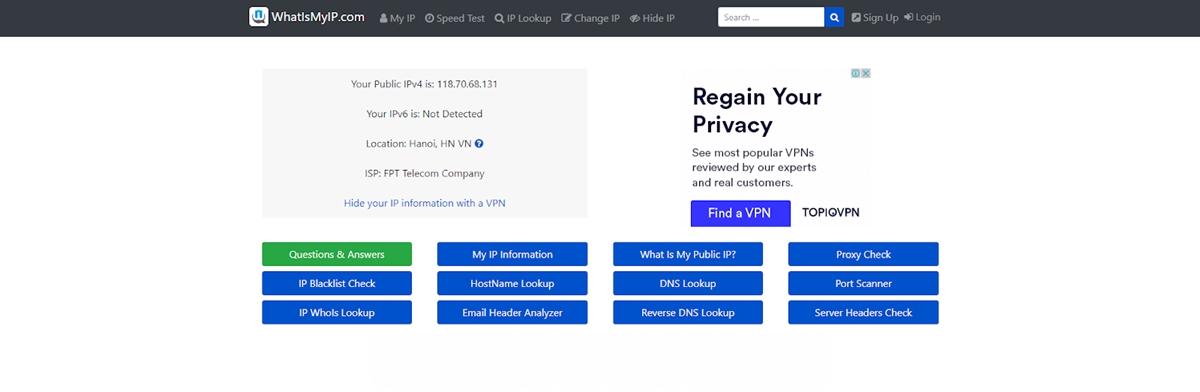 What Is My IP está especializado en proporcionar información de direcciones IP reales. Los usuarios pueden realizar una prueba de velocidad de Internet, búsqueda de direcciones IP, detección de proxy, búsqueda de Whois y más.