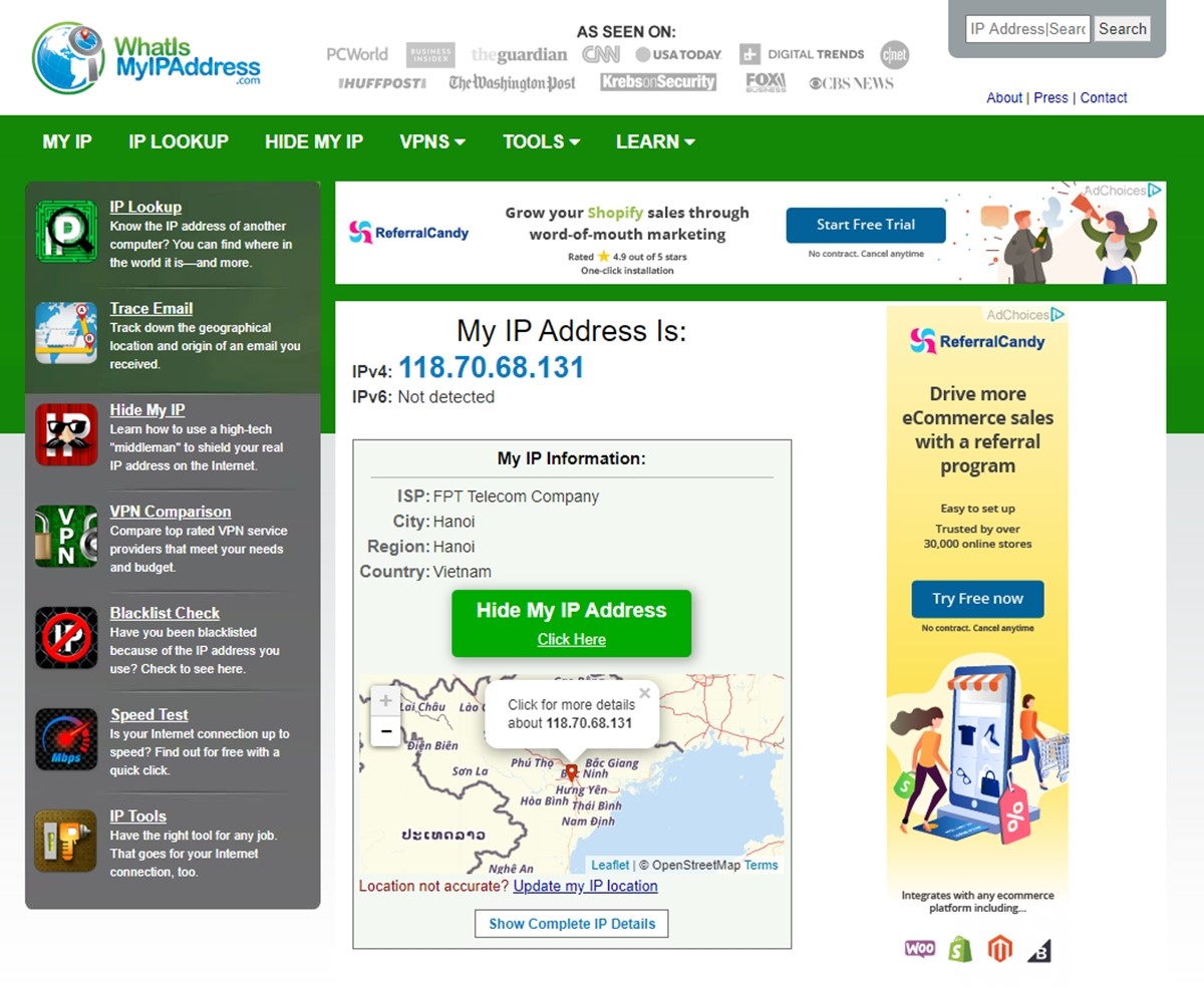 Por último, pero no menos importante, tenemos una herramienta simple como IP Tracker , pero sigue siendo poderosa para rastrear cualquier dirección IP. Al ingresar a los sitios web, tendrá una herramienta para buscar, encontrar y rastrear cualquier ubicación de IP pública de todo el mundo.