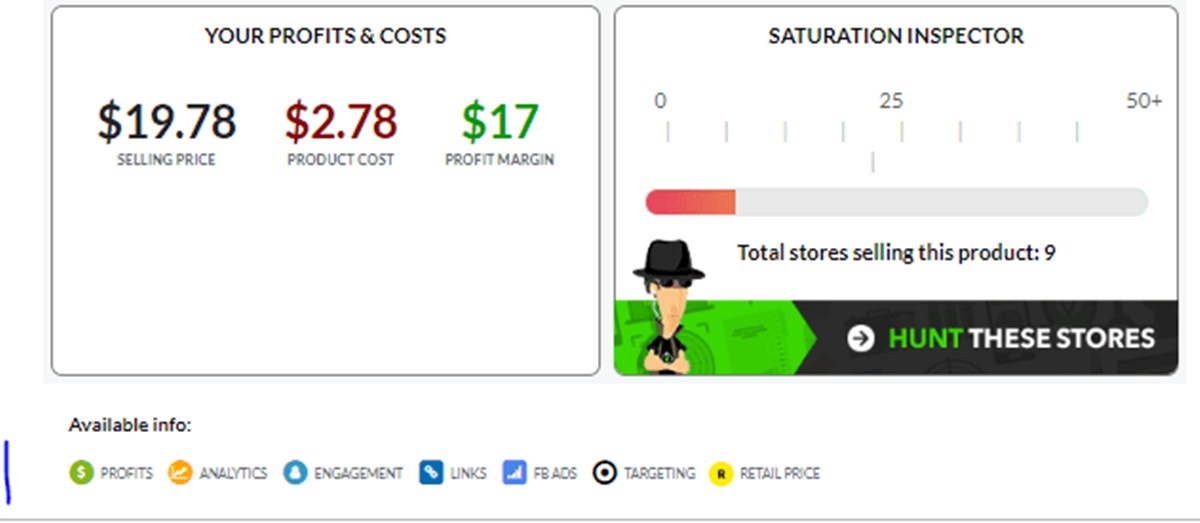 Ecomhunt proporciona enlaces a otras tiendas que ofrecen dichos artículos, brindando información útil a los proveedores y otros conocimientos importantes sobre los productos que venden. Esto lo ayudará a abastecer su tienda con artículos que se sabe que se venden bien en otros lugares.