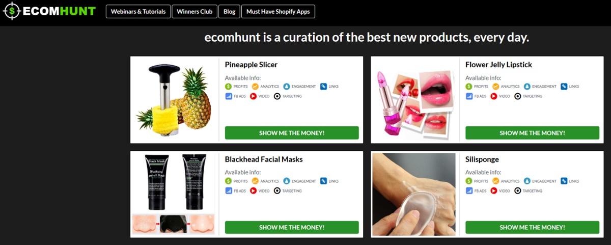 Ecomhunt lo ayudará a llenar su tienda y comercializar los productos correctos desde el primer día. Le permite comenzar a enviar, promocionar y obtener ventas en cuestión de días, en lugar de semanas o meses de prueba y error. puede comenzar a pagar el rendimiento de su inversión más rápidamente y no tiene que esperar meses para ver sus ganancias. Entonces, si recién está comenzando a caer, Ecomhunt podría ser una excelente opción para usted.