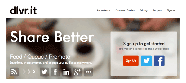 Dlvr.it utiliza su fuente RSS para actualizar todos sus perfiles de redes sociales.