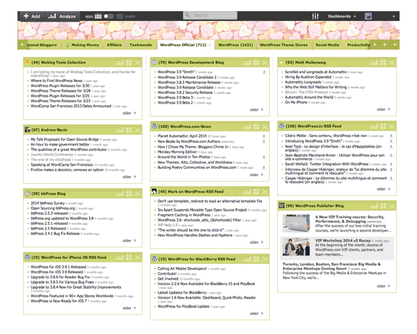 Mi elección personal es Netvibes . Al principio probé muchos lectores de RSS y era el servicio al que volvía porque me encantaba cómo mostraba los feeds usando widgets.
