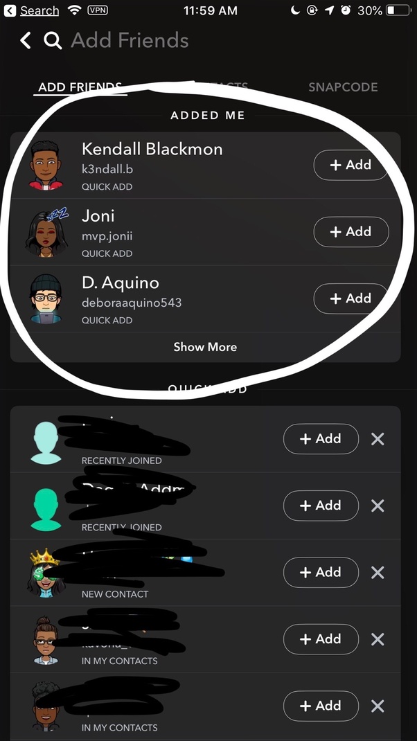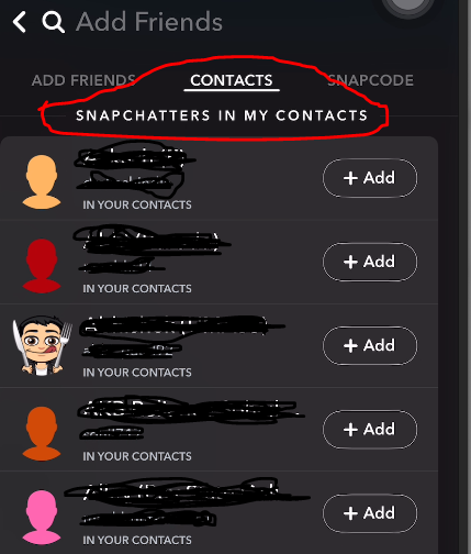 Continúe tocando el toque «Contactos» y descubra una lista de personas que usan Snapchat cuyos números tiene en su lista de contactos. Tienen su número de teléfono conectado con su cuenta de Snapchat y no han sido tus amigos de Snap.