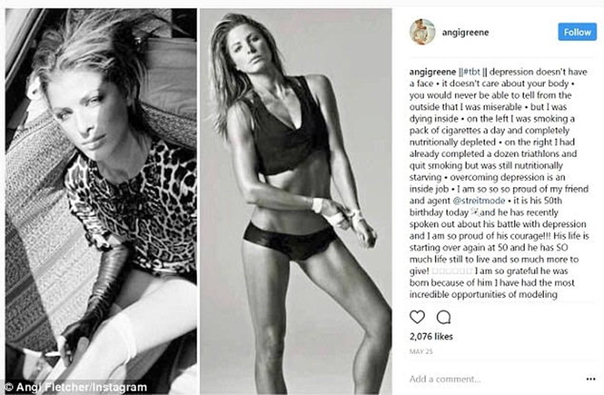 Angi Greene se describe a sí misma como mamá de niños, 13 x modelo de portada, atleta, entrenadora, defensora de la salud y el bienestar. También es conocida como narradora de historias en Instagram. De hecho, todas sus publicaciones, ya sean anuncios o no, incluyen una leyenda muy larga que cuenta las historias relevantes.