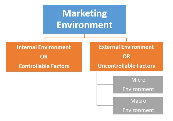 El entorno de marketing externo se compone de muchos factores diferentes, mientras que el entorno interno se puede controlar fácilmente, pero el entorno externo es difícil de controlar. El entorno externo se divide en dos categorías diferentes: micro y macro entornos de marketing.