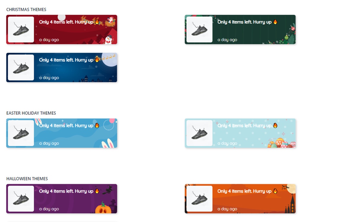 Es tan conveniente que puede ajustar libremente la cantidad de artículos que quedan en stock. Cuanto más limitados sean sus artículos almacenados, más urgente se sentirán los clientes para comprarlos. Como consecuencia, van a hacer pedidos sin dudarlo. Si su objetivo es aumentar sus ventas y minimizar el costo de marketing, esta pequeña pero poderosa ventana emergente le brindará una gran ayuda.