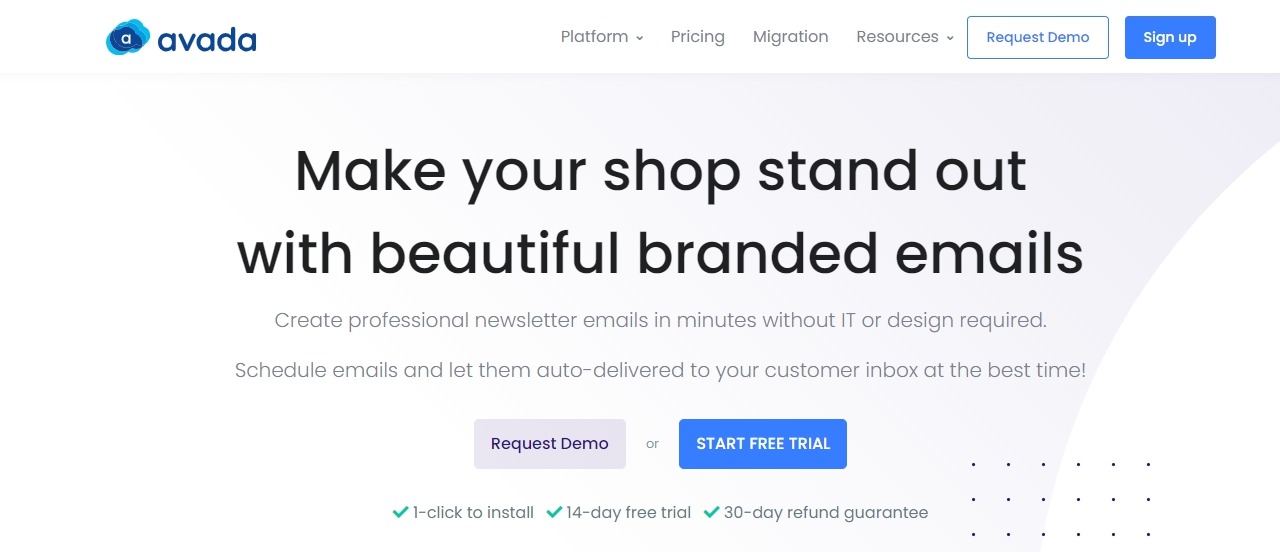¿Quieres crear hermosos boletines para las publicaciones de tu blog? ¿Quieres enviar correos electrónicos masivos pero aún así ser personalizados? AVADA Marketing Automation puede hacer eso. Y, lo mejor de todo, la aplicación es gratuita para comenzar a usar y solo cuesta $ 9 cuando cambia a los planes pagos.