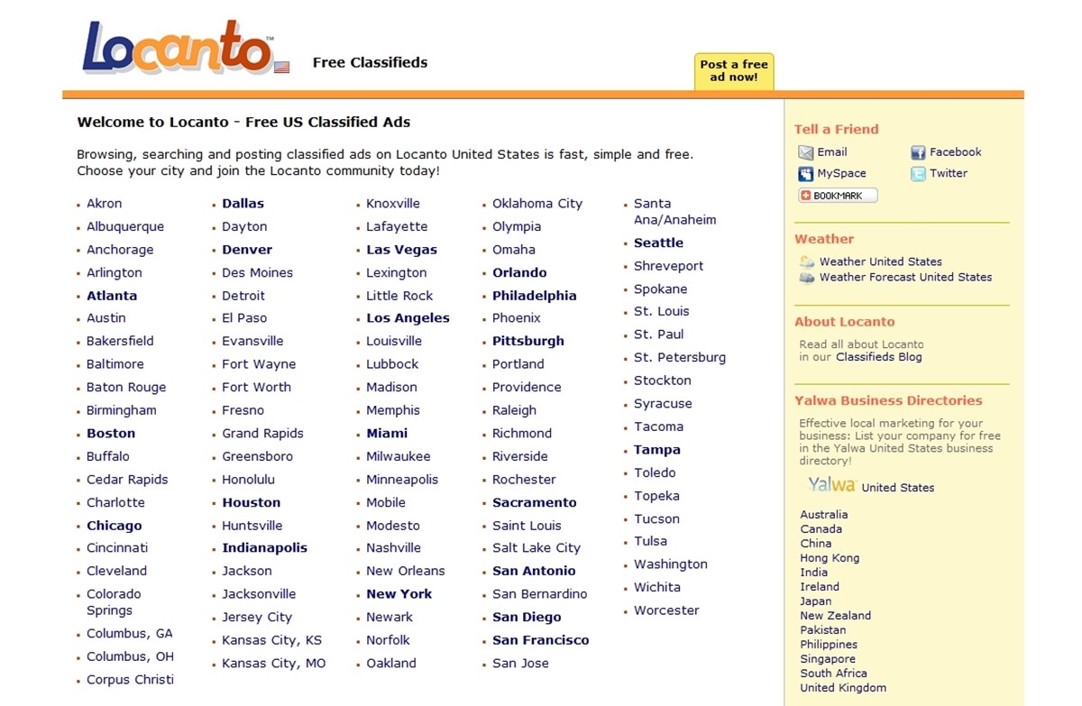 Locanto también ha ampliado su mercado a otros países como Australia, Austria, Canadá, Sudáfrica y otros lugares. Cuando publica un anuncio, puede agregar fotos, incluir enlaces o el código HTML, y su anuncio se publicará durante 60 días. Todavía hay algunas desventajas a considerar, incluyendo que algunas ciudades todavía tienen que pagar una pequeña tarifa para publicar anuncios o que la seguridad no está estrictamente garantizada debido a la política de publicación de anuncios con tarifa de registro.