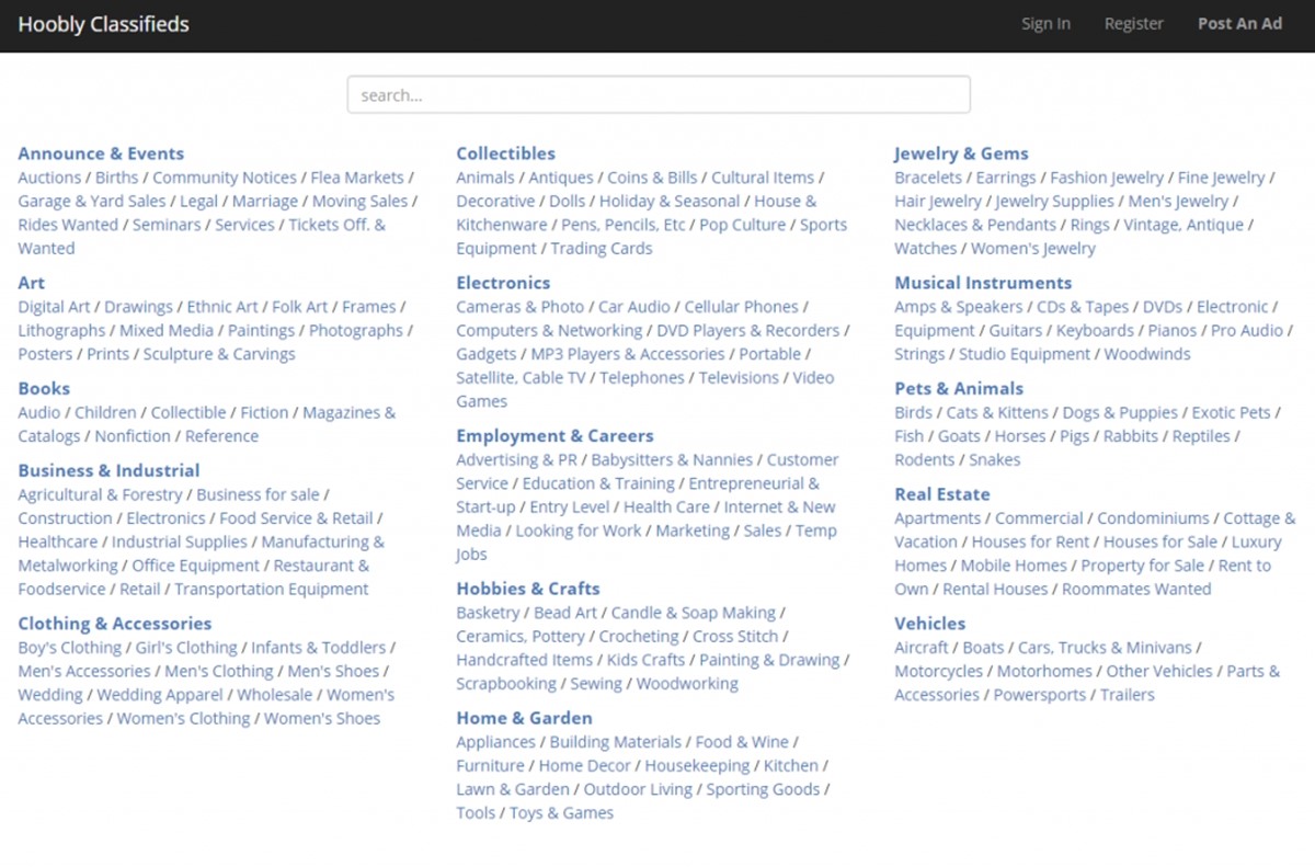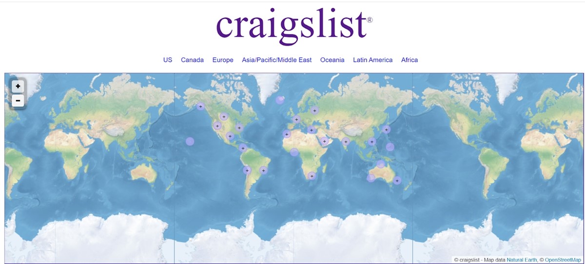 Craigslist podría ser uno de los sitios de anuncios clasificados más populares hasta la fecha, con casi 55 millones de visitantes al mes según Alexa. El sitio ofrece una gran cantidad de subcategorías publicitarias que van desde viviendas, trabajos, servicios, eventos hasta mercadería en general.