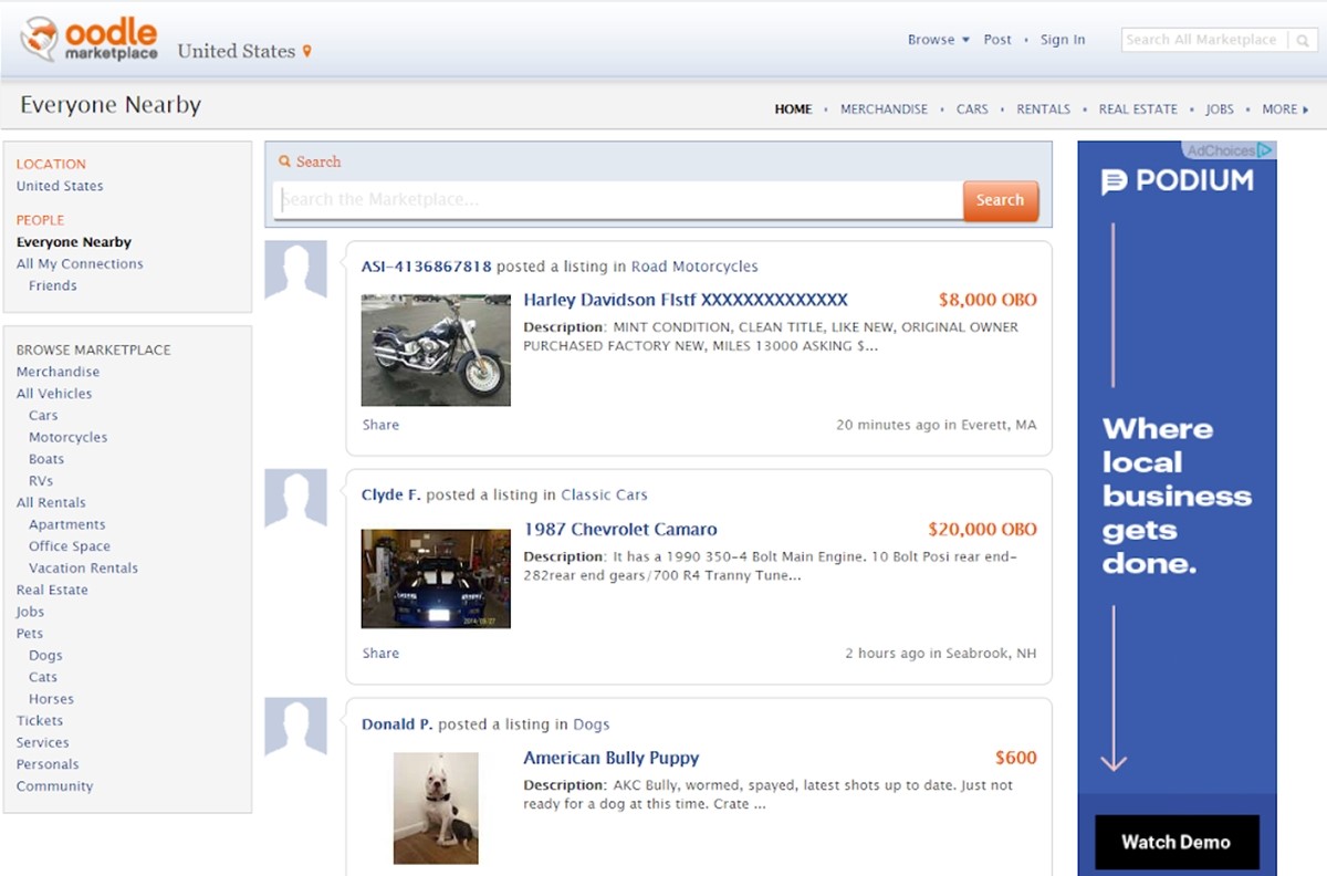 Oodle tiene una red extraordinariamente amplia de publicaciones de anuncios gratuitas tanto a nivel local como global. El sitio tiene una gran compatibilidad con varios mercados en muchas plataformas de redes sociales y ahora cuenta con alrededor de 15 millones de usuarios mensuales en 7 países.
