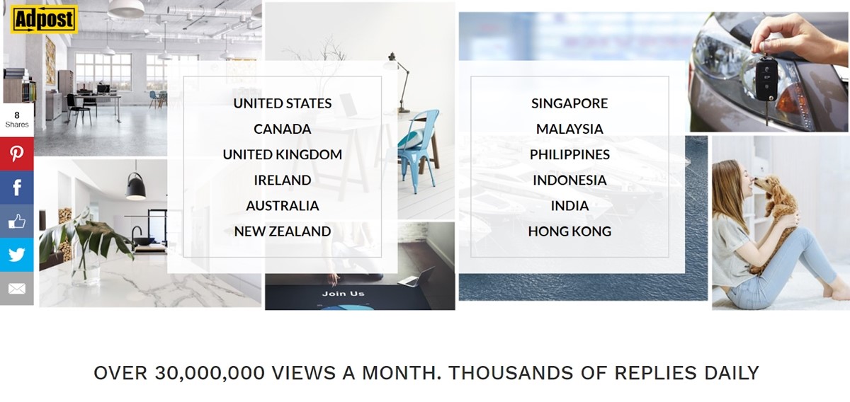 Adpost comparte algunas similitudes importantes con Craigslist, pero este sitio puede incluso llegar a una audiencia mucho mayor a escala internacional. Es bastante ideal para poner en marcha su plan de marketing con Adpost si apunta a la red global.