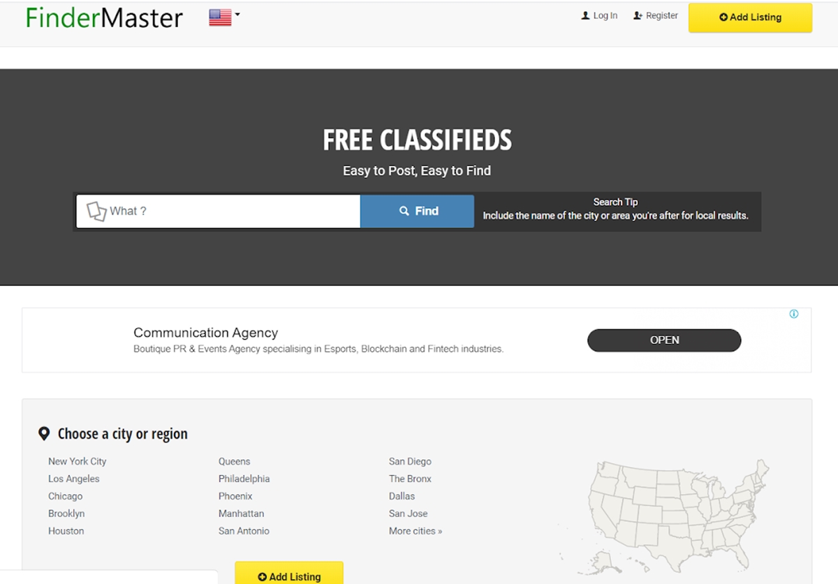 Finder Master conquista el mercado por su modernidad y facilidad de uso. Este eficaz sitio de publicidad ofrece publicaciones de anuncios totalmente gratuitas al mismo tiempo que se registra como miembro o permanece como invitado.